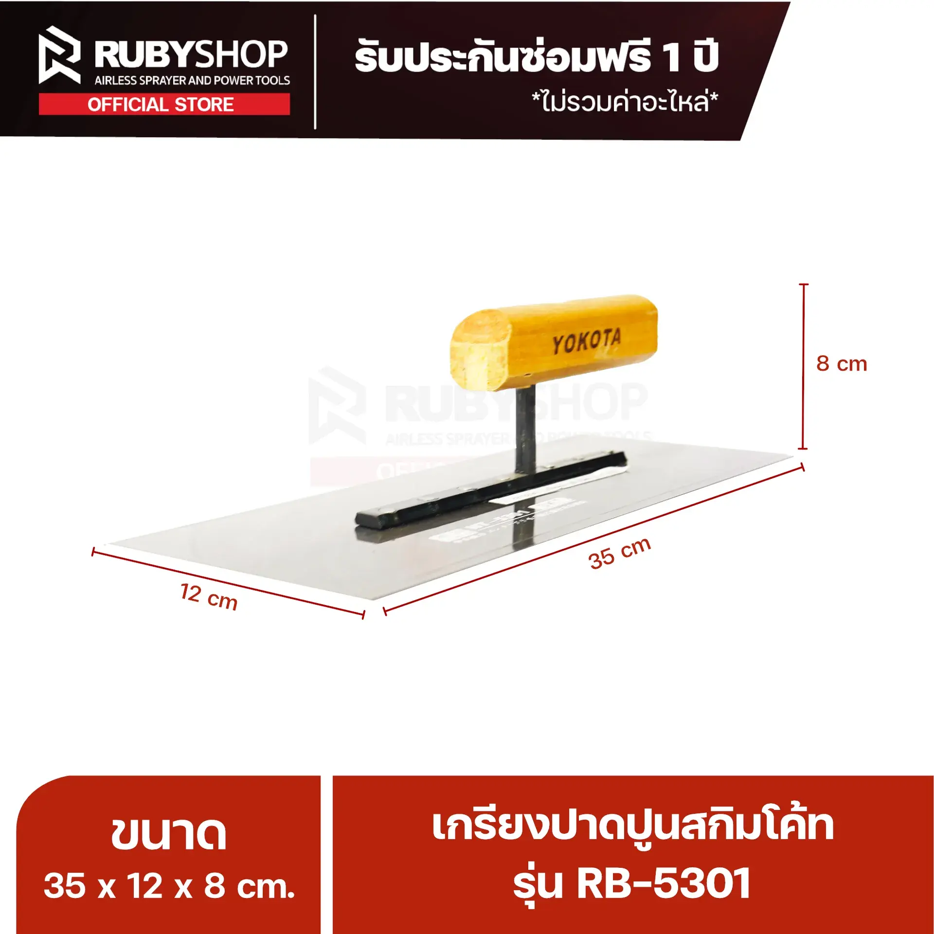 RUBY SHOP เกรียงฉาบสกิมโค้ท เกรียงฉาบปูน เกรียงโบกปูน รุ่น RB-5301 ขนาด 35x10.5x9 cm ด้ามไม้