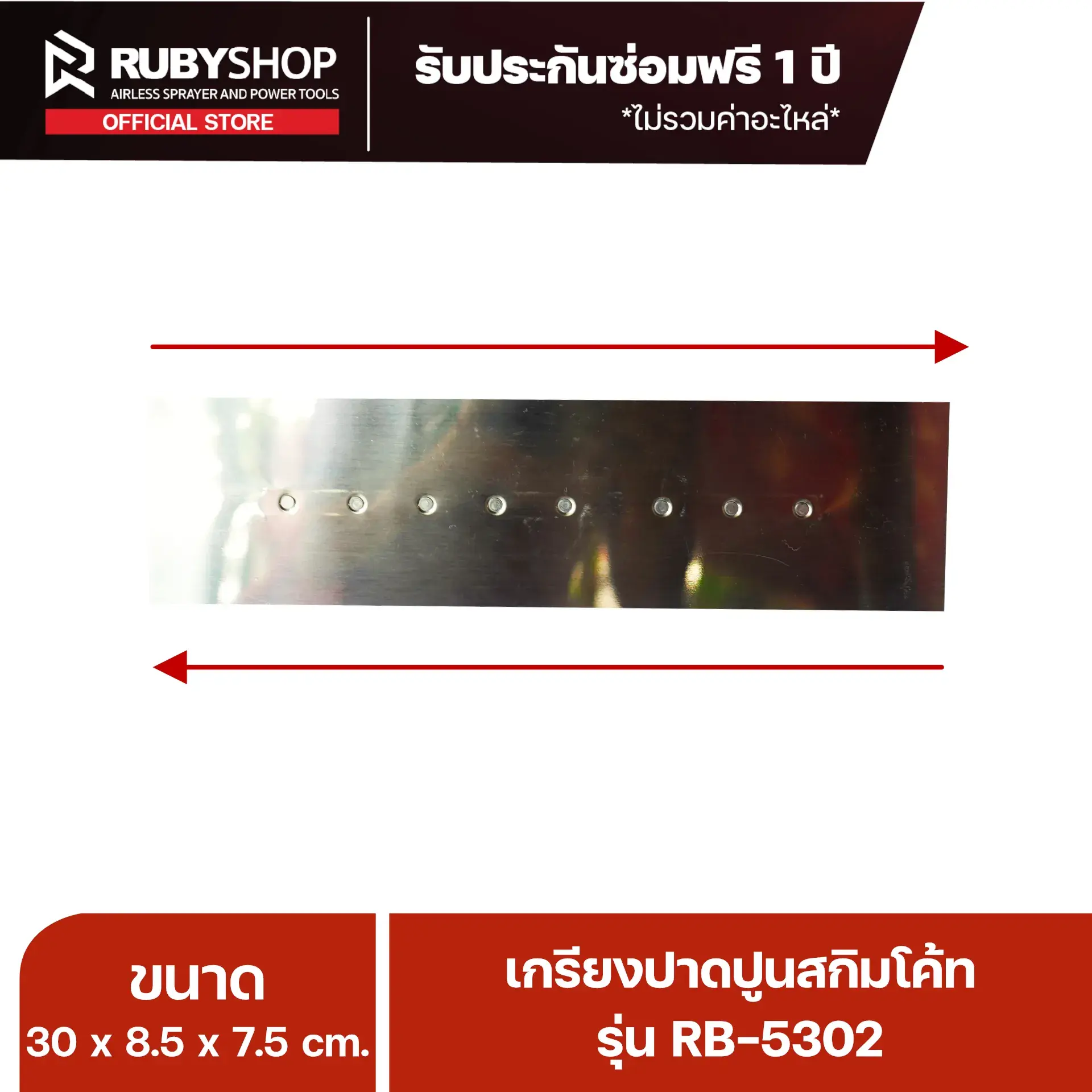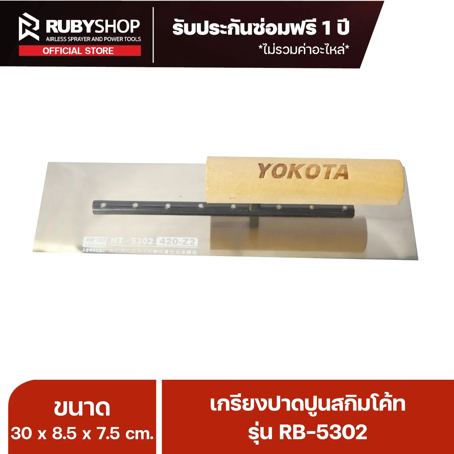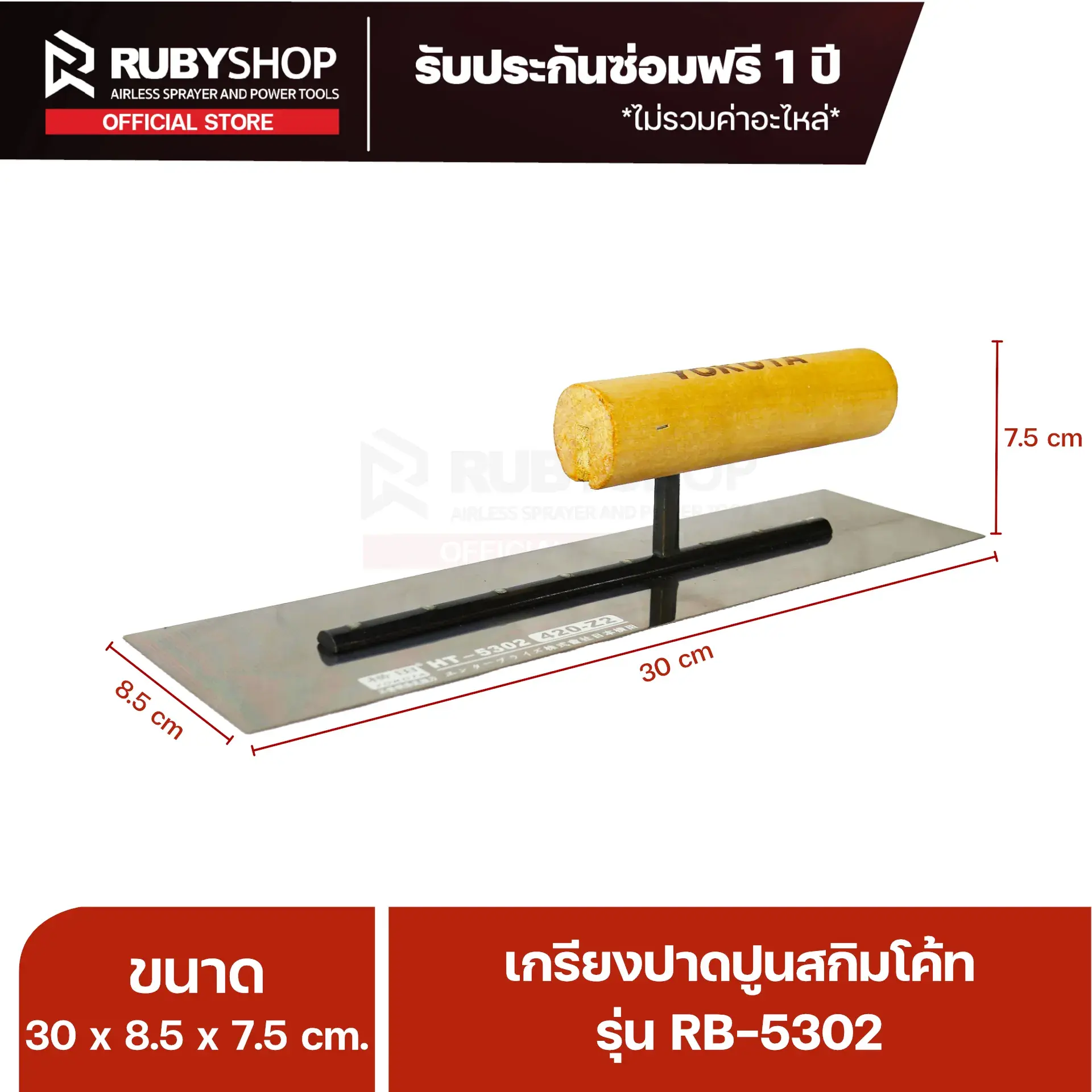 RUBY SHOP เกรียงฉาบสกิมโค้ท เกรียงฉาบปูน เกรียงโบกปูน รุ่น RB-5302 ขนาด 30x8.5x9 cm ด้ามไม้ เกรียงสี่เหลี่ยม