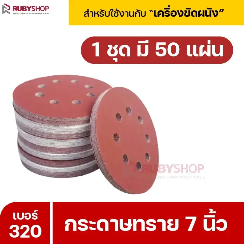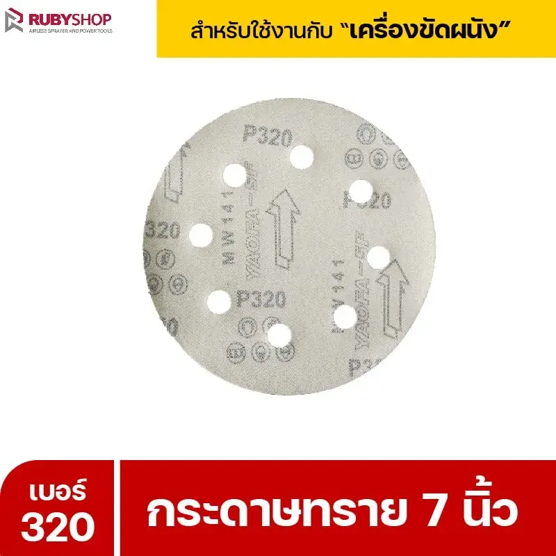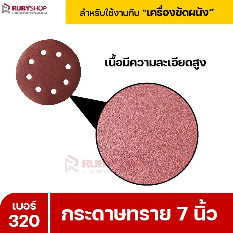 RUBYSHOP กระดาษทราย 50 แผ่น เบอร์ 320 ขนาด 7 นิ้ว สำหรับเครื่องขัดผนัง รุ่น RB-DWS-180S