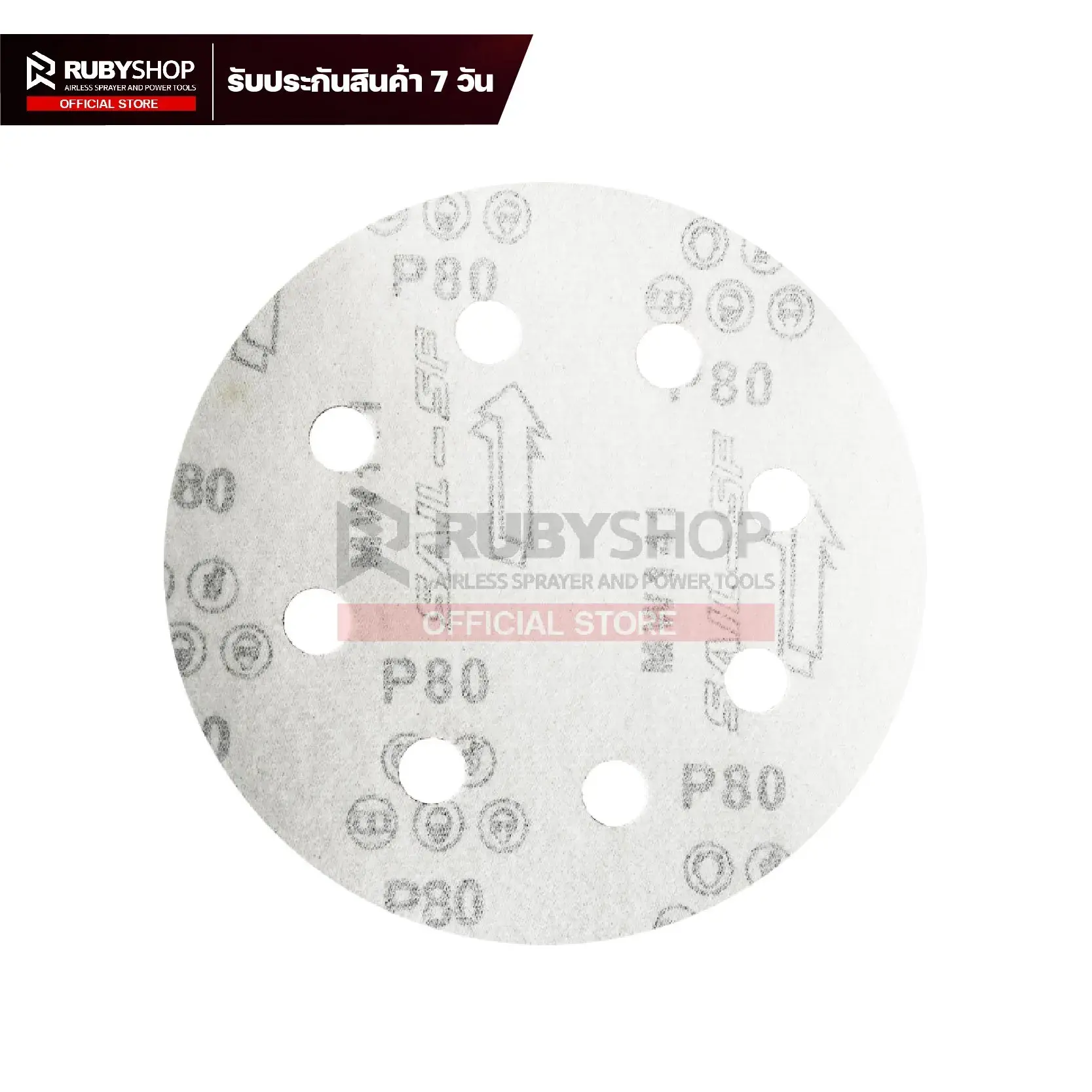RUBYSHOP กระดาษทรายกลมสักหลาด เบอร์ 80 ขนาด 9 นิ้ว 6 รู (แพ็ก 50 ชิ้น) สำหรับเครื่องขัดผนัง รุ่น RB-DWS-225B