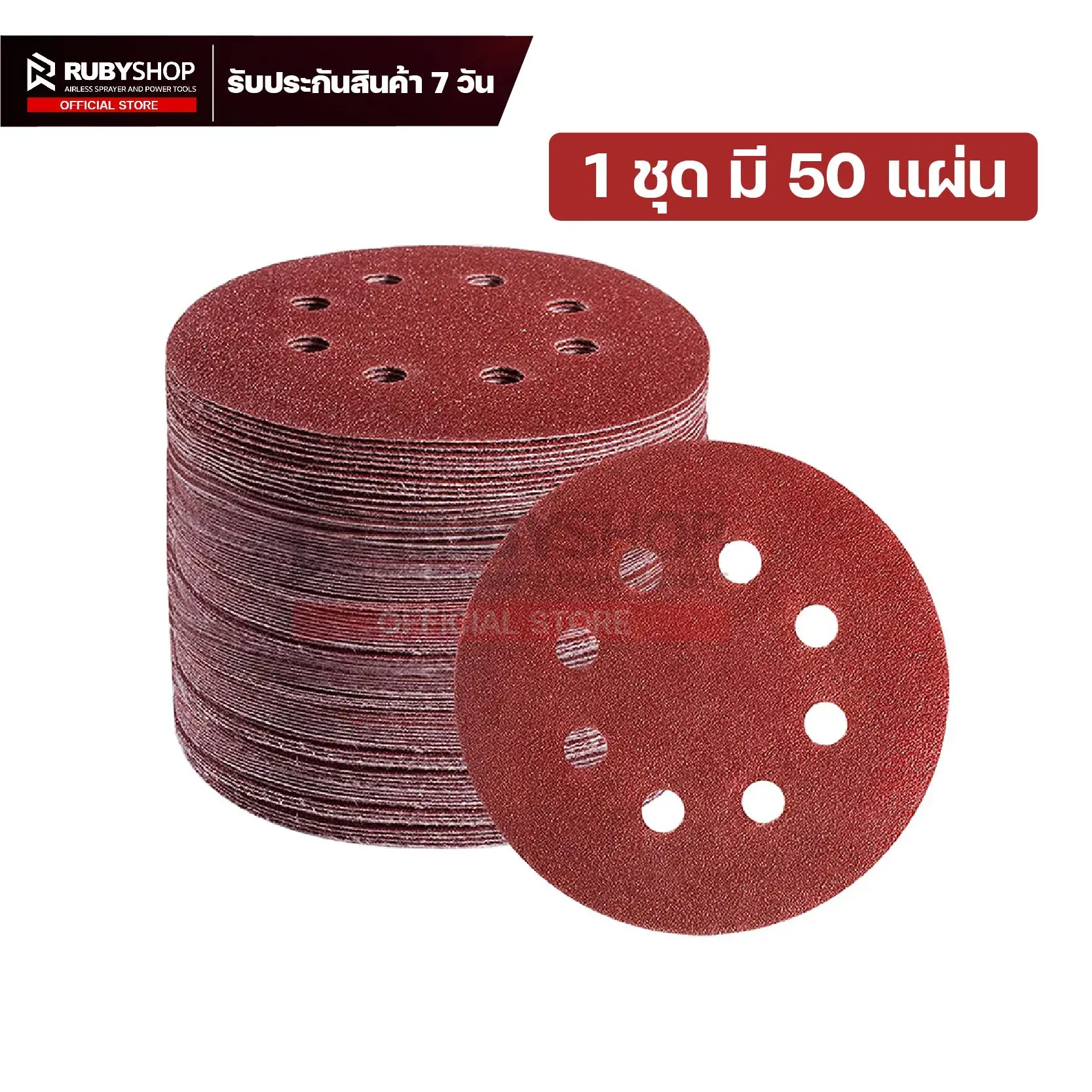 RUBYSHOP กระดาษทรายกลมสักหลาด เบอร์ 120 ขนาด 9 นิ้ว 6 รู (แพ็ก 50 ชิ้น) สำหรับเครื่องขัดผนัง รุ่น RB-DWS-225B