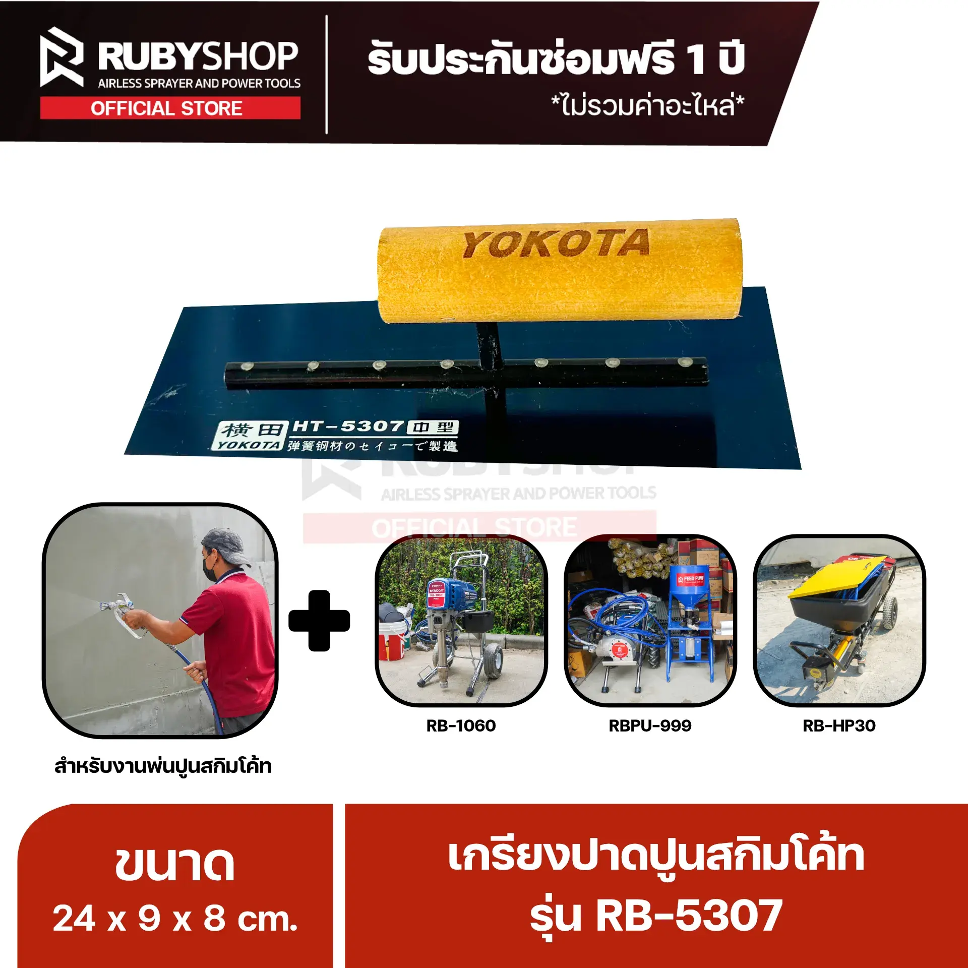 RUBYSHOP เกรียงฉาบปูน เกรียงฉาบสกิมโค้ท รุ่น RB-5307 ขนาด 24x8x9 cm ด้ามไม้