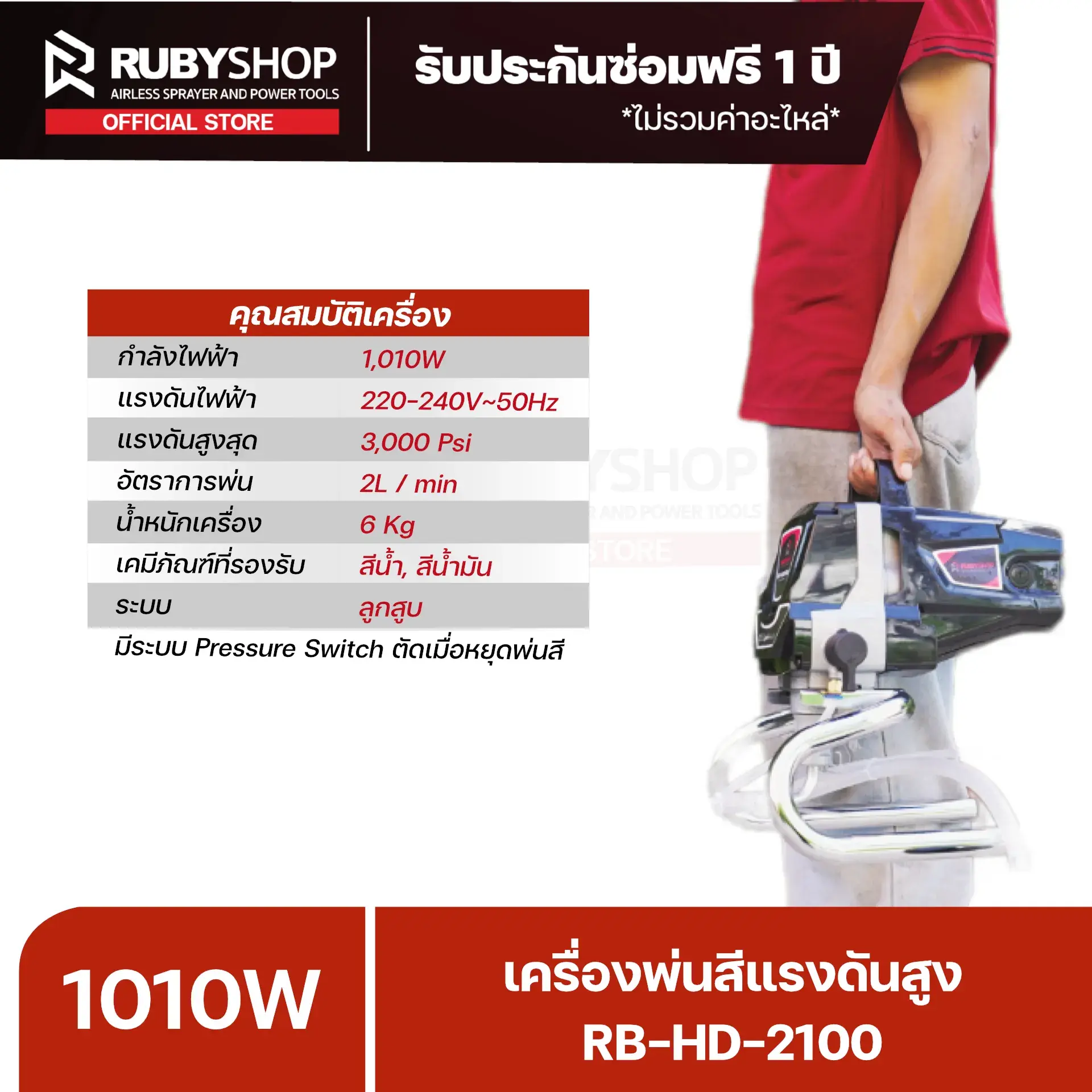 RUBYSHOP เครื่องพ่นสีแรงดันสูง แบบพกพา รุ่น RB-HD-2100 แรงดูดสี 2 ลิตรต่อนาที