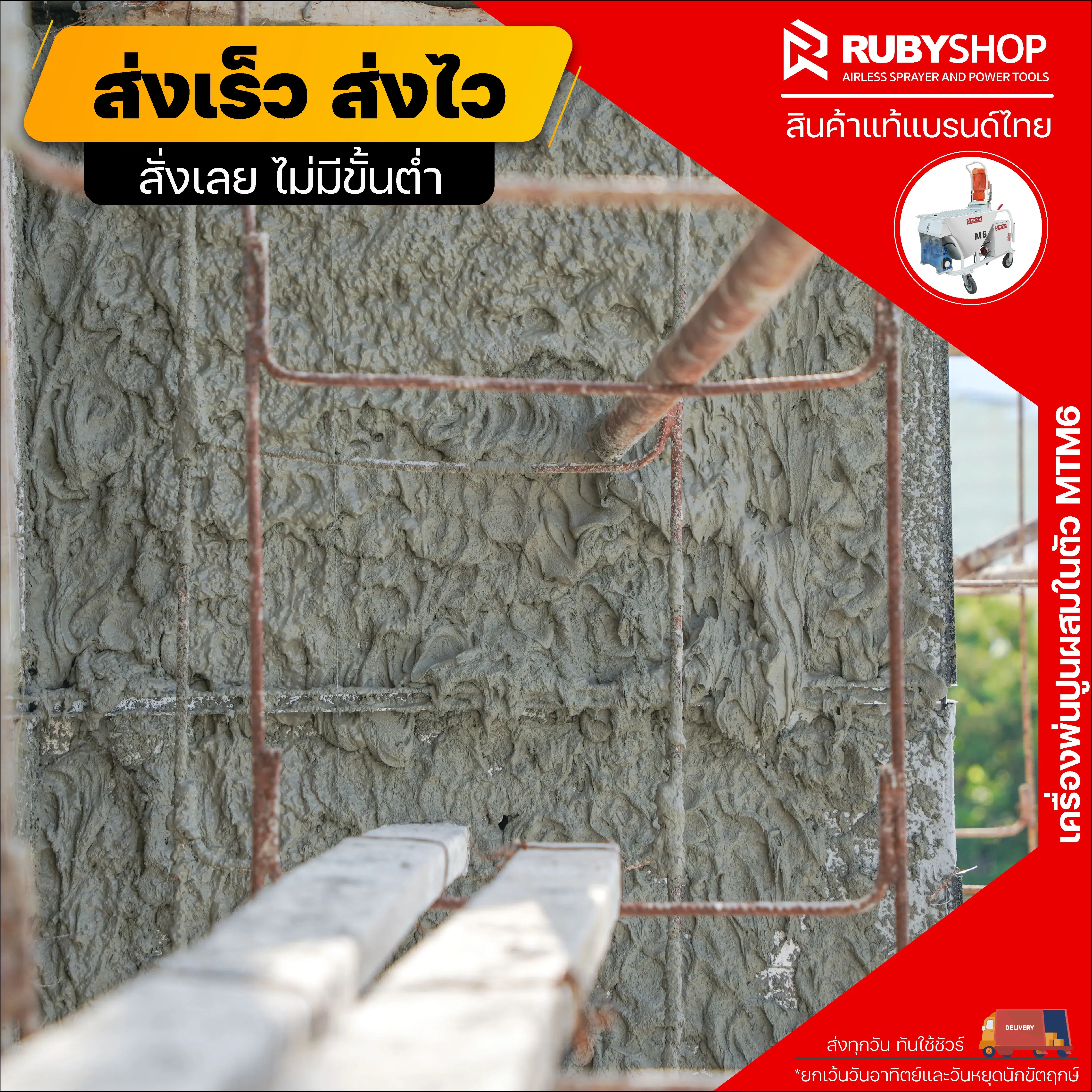 • เครื่องพ่นปูนฉาบผสมในตัว รุ่น RB-MTM6 ไฟ 3 เฟส (380v) คุณภาพดีจาก RUBY SHOP ใช้งานง่าย สะดวกรวดเร็ว