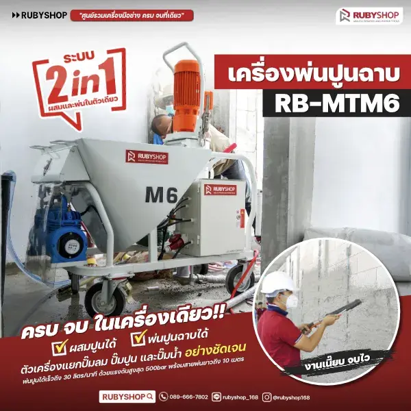 เครื่องพ่นปูนฉาบผสมในตัว RUBYSHOP รุ่น RB-MT-M6: จบงานไว สบาย แรง