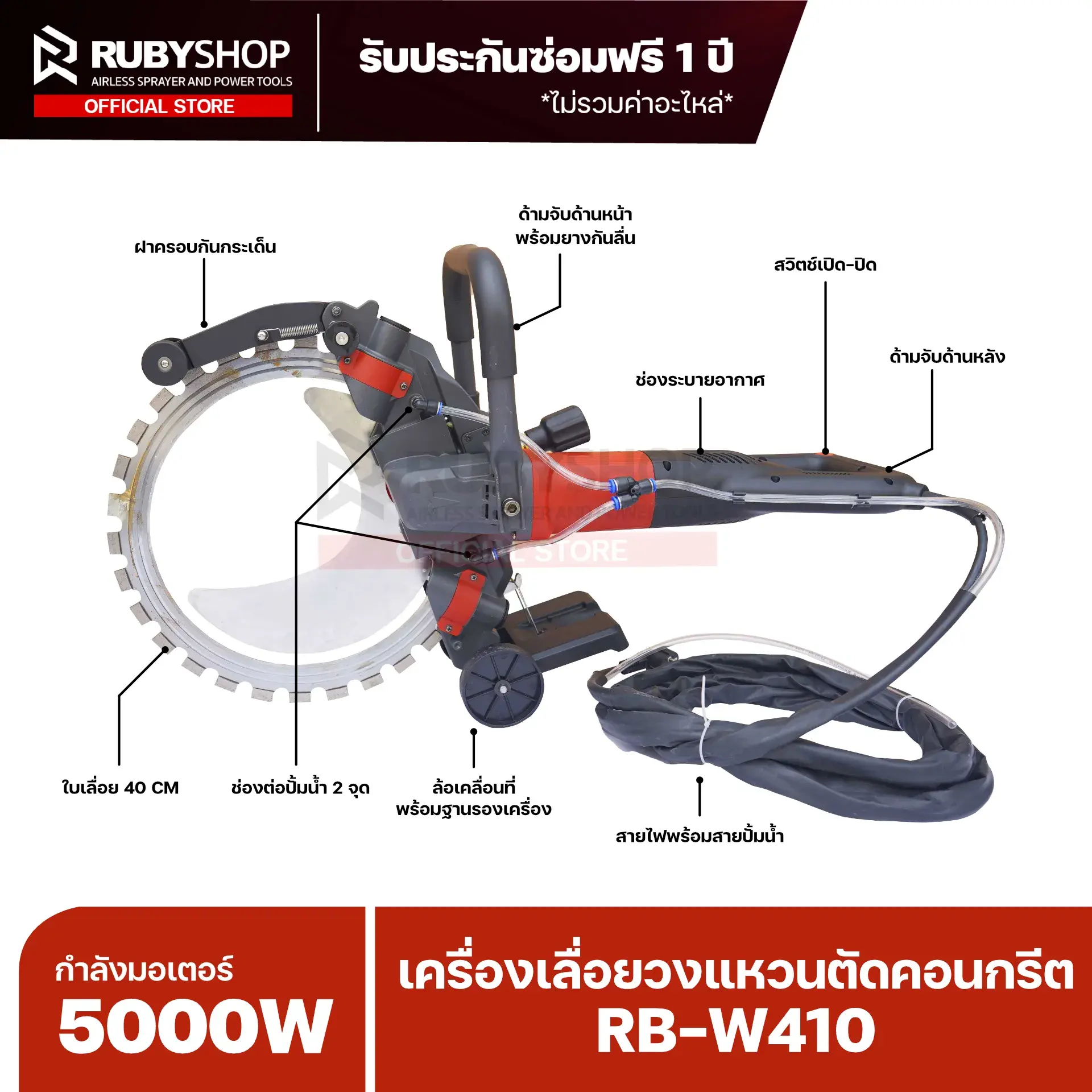 RUBYSHOP เครื่องเลื่อยวงแหวนตัดคอนกรีต รุ่น RB-W410 กำลังมอเตอร์ 5000W