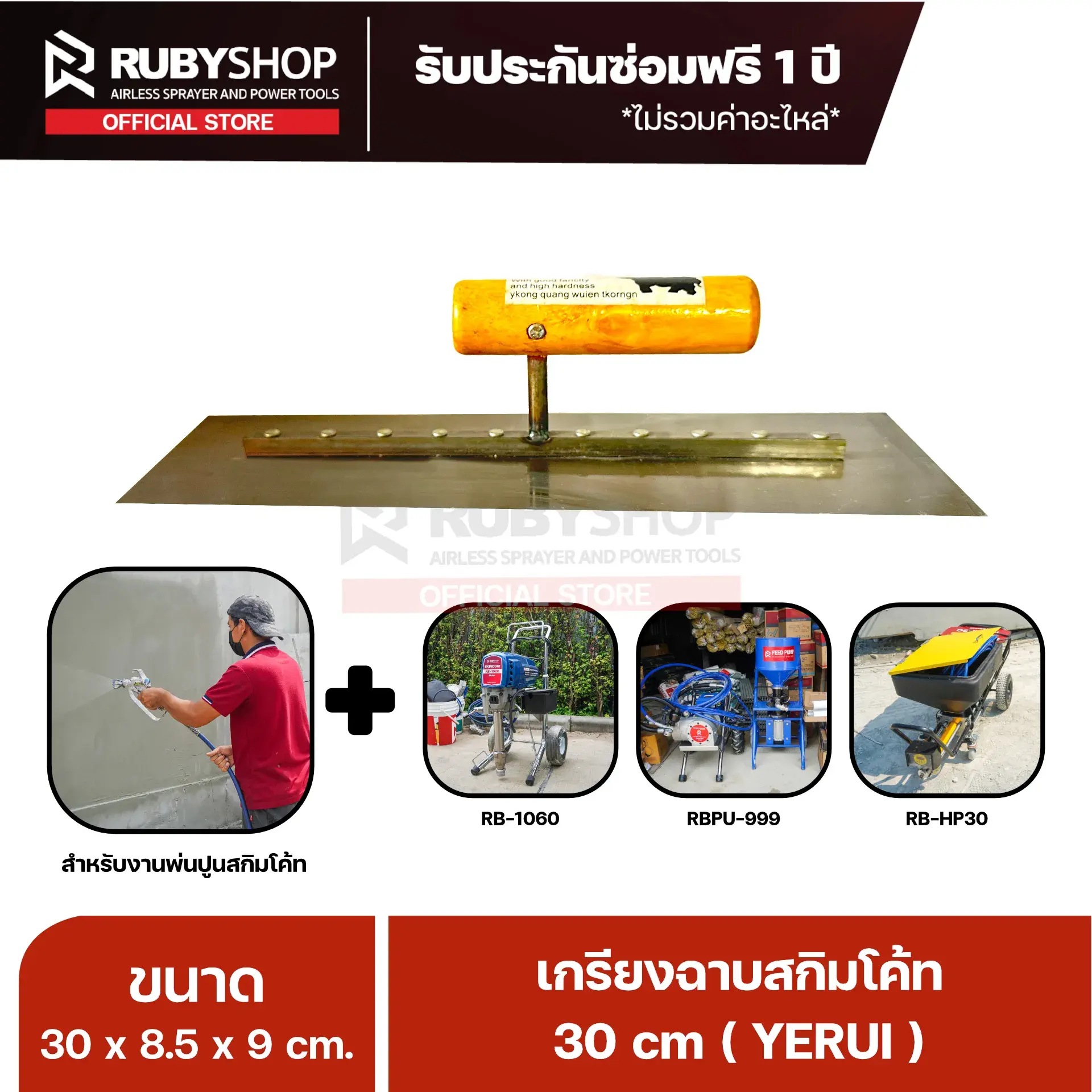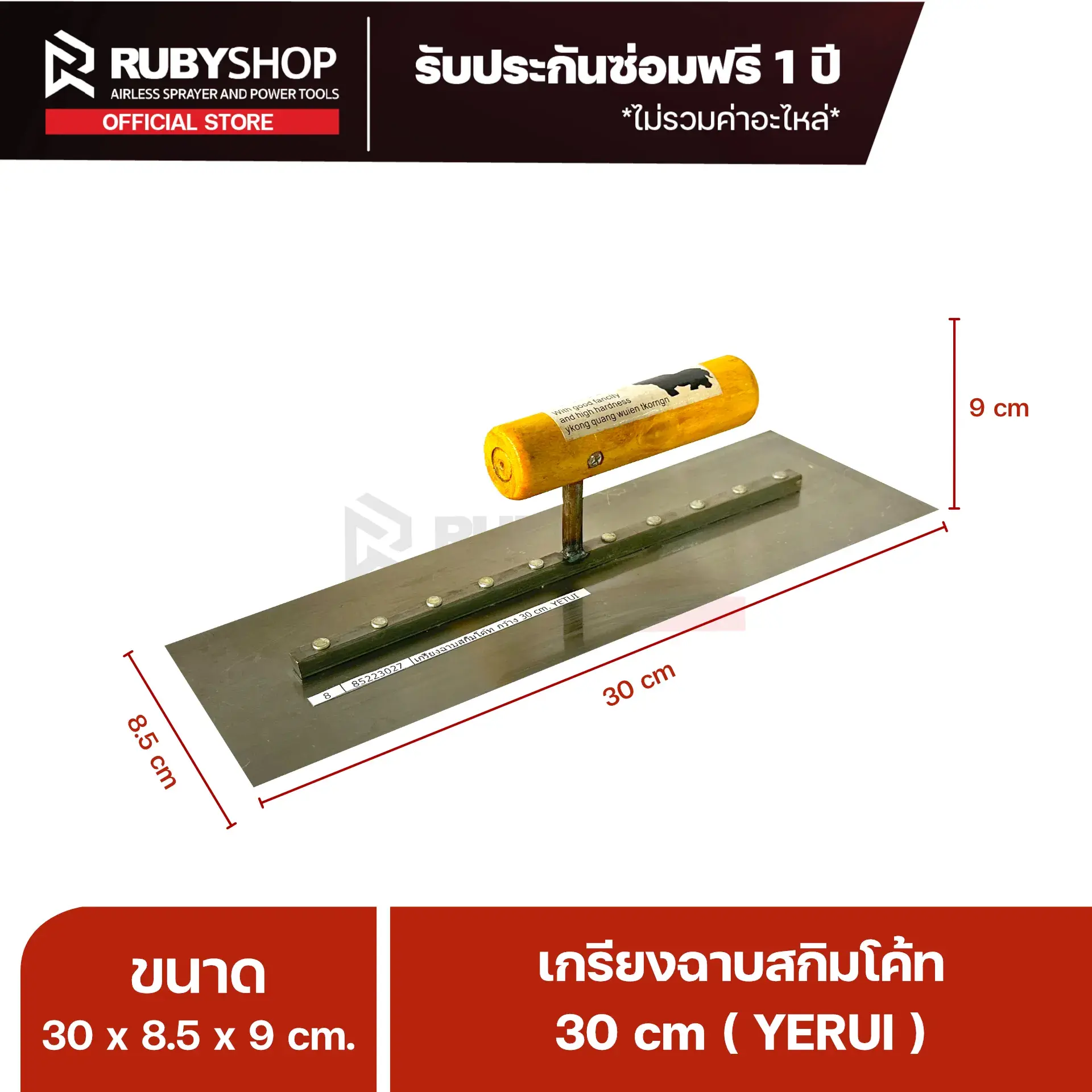 RUBYSHOP เกรียงฉาบปูน เกรียงฉาบสกิมโค้ท YETUL ขนาด 30x8.5x9 cm ด้ามไม้